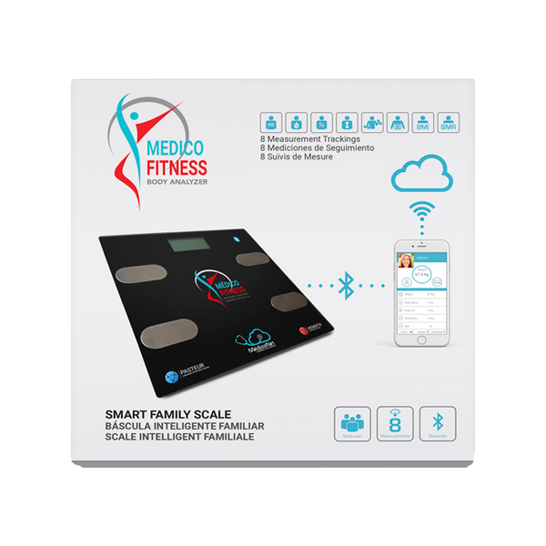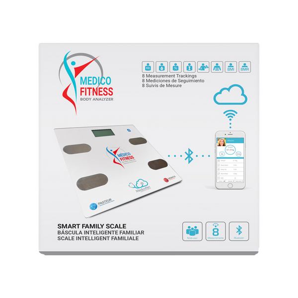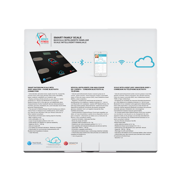 Registre y Visualice las mediciones de la báscula directamente en su teléfono o tableta (Android 5.0 con Bluetooth 4.0) instalando nuestra APP Médico Fitness.